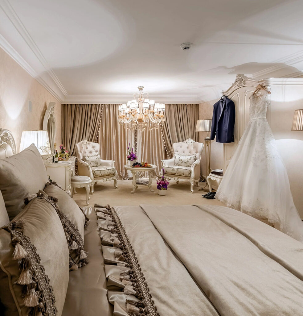 Spațiu privat și distins, apartamentul DeLuxe include un lounge generos, două dormitoare elegante și o baie proprie. Este locul ideal pentru relaxare și pregătire în ziua evenimentului, adăugând un plus de confort întregii experiențe Le Château.